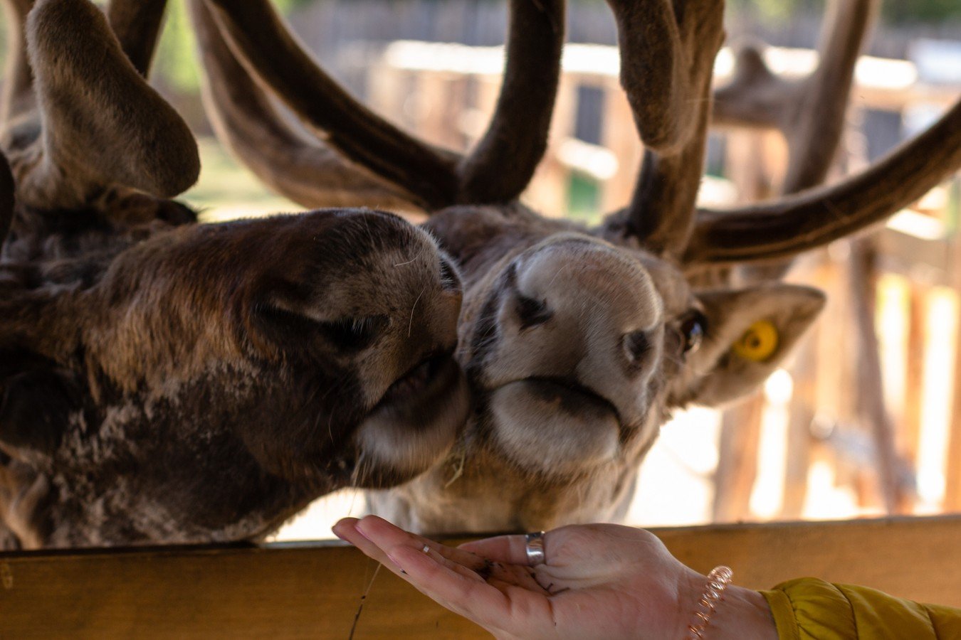 - Экопарк «Долина водопадов». Мы пройдём по экотропе вдоль реки Иййоки, заглянем в саамскую деревню и музей мёда. Вы познакомитесь с главными символами Севера — оленями, лосями и дружелюбными хаски