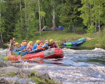 - Сплав по Янисйоки. Мы отправимся к точке старта, где вы пройдёте инструктаж, и спустим рафты на воду. Дистанция 8 км идеально подходит для новичков: вы прочувствуете драйв реки, при этом специальная подготовка не потребуется