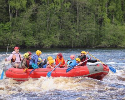 - В стоимость включено: трансфер, проживание (1 ночь), завтрак, входные билеты в «Долину водопадов» и «Рускеалу», сплав, работа инструкторов и обед у костра