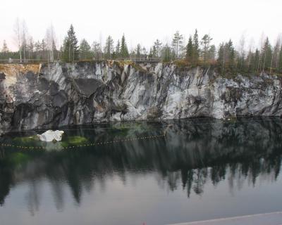 - Горный парк «Рускеала». Главная точка дня — знаменитый Мраморный каньон. У вас будет 3 часа, чтобы изучить Итальянский карьер, пройтись по тропам вокруг чистейшего озера и увидеть, как в сумерках включается художественная подсветка