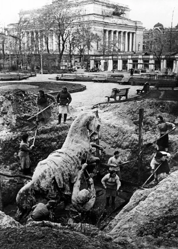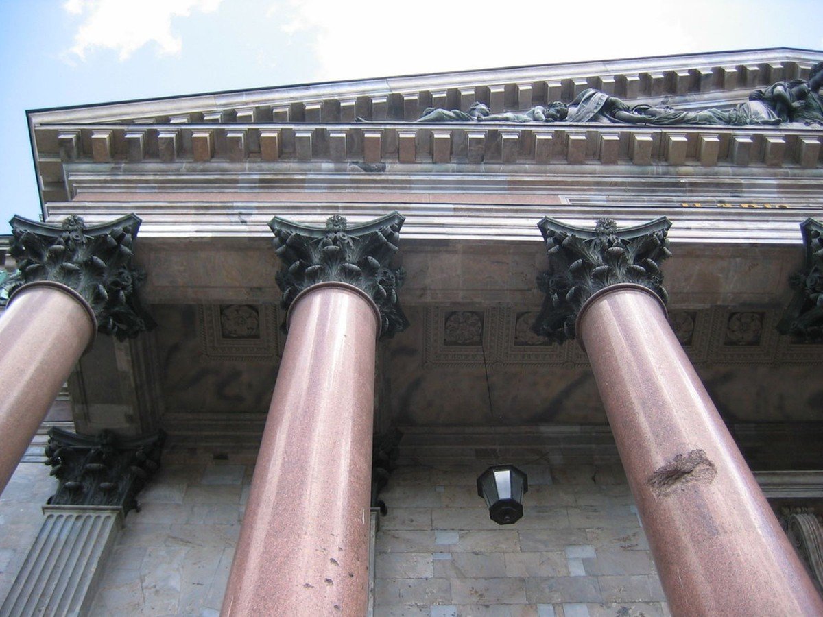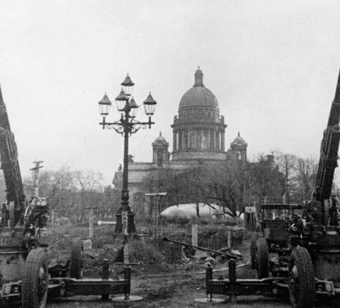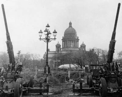 - Исаакиевский собор — ориентир для вражеской авиации, со следами обстрелов и системой маскировки