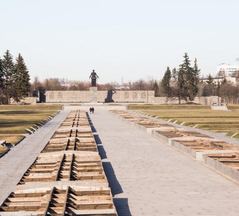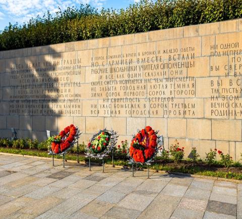 Главное место памяти жертв блокады. Здесь, в братских могилах, покоятся сотни тысяч жителей и защитников города. Вечный огонь на входе и торжественная Аллея Памяти задают тон всей экскурсии — скорбный, но не безнадёжный.