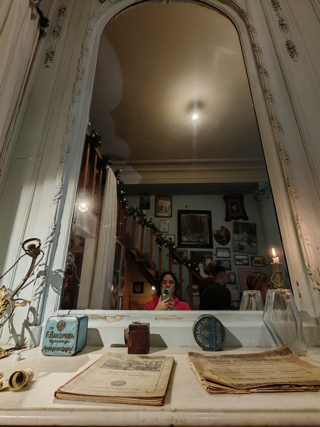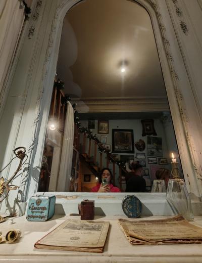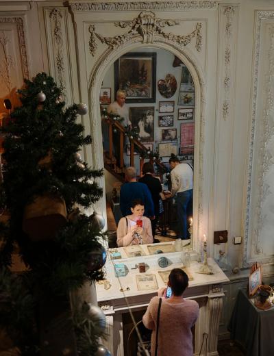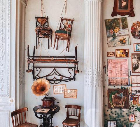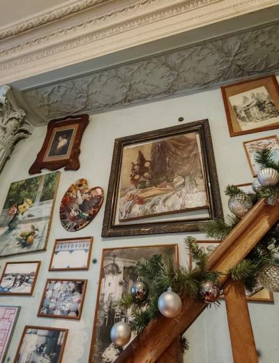 - сделаете оригинальные фотографии (балкон с видом на воздушные галлереи; зеркало в обрамление лепнины; лестница с картинами, ведущая на антресоль)
