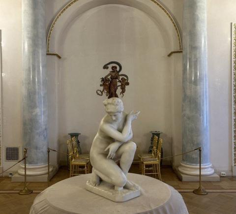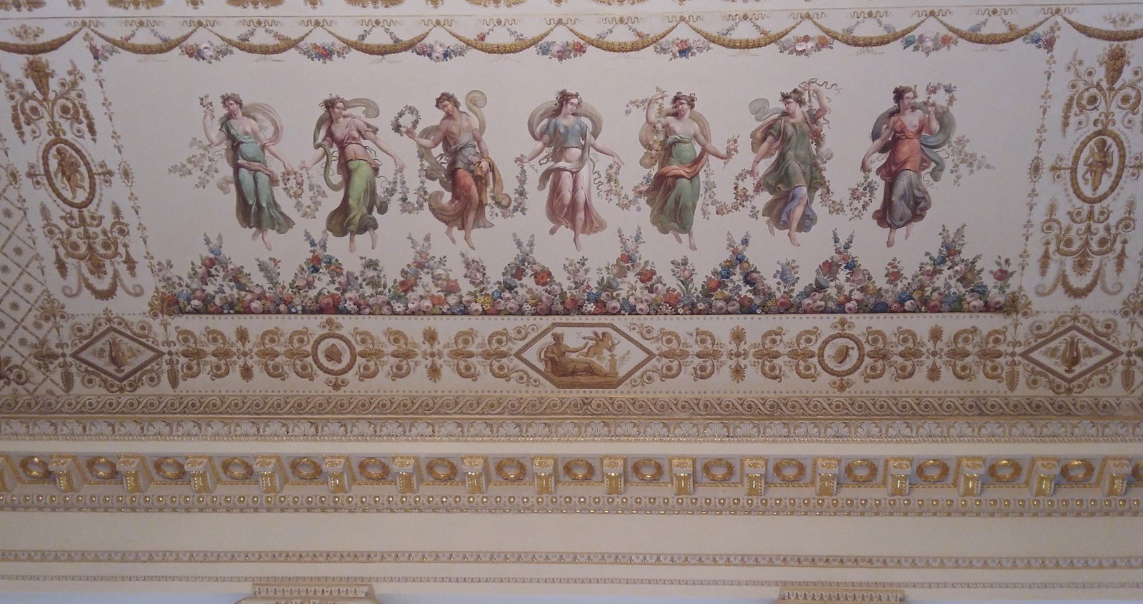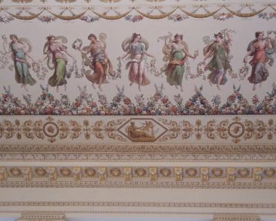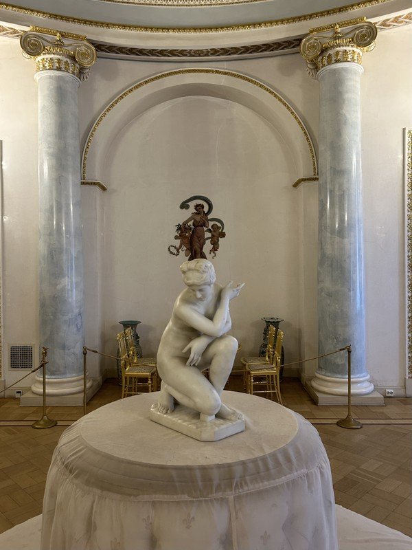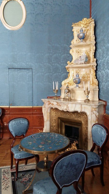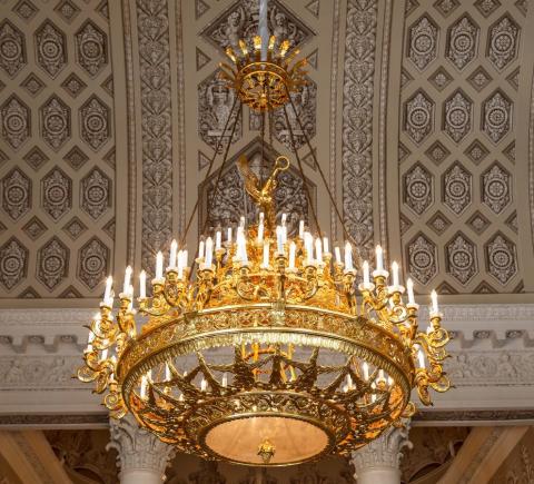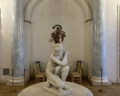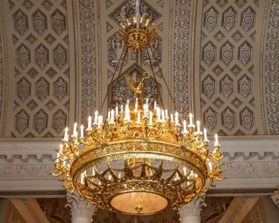 Поднявшись по главной мраморной лестнице, пройдём анфиладой парадных гостиных и бальных залов, сохранивших великолепное убранство 19 века.