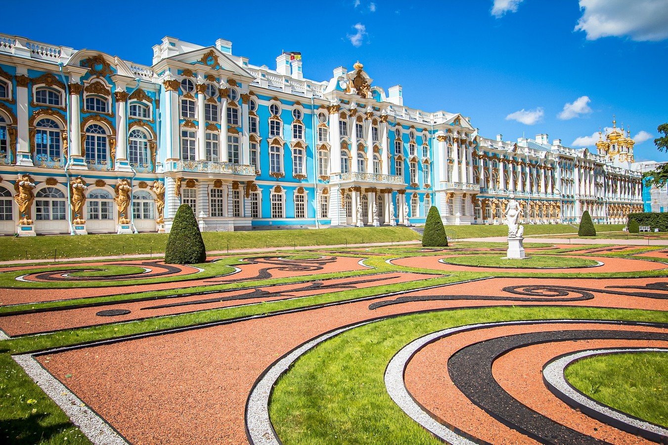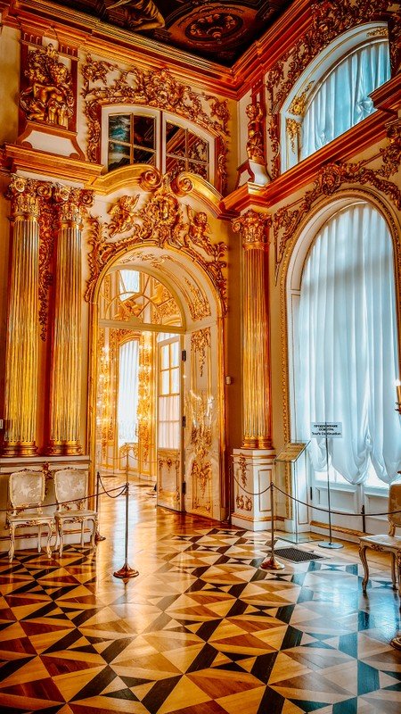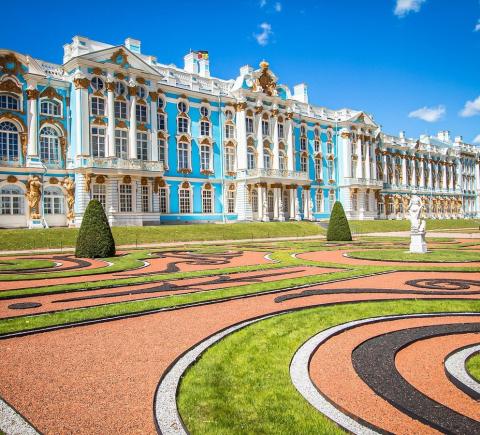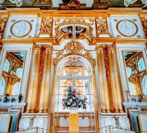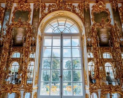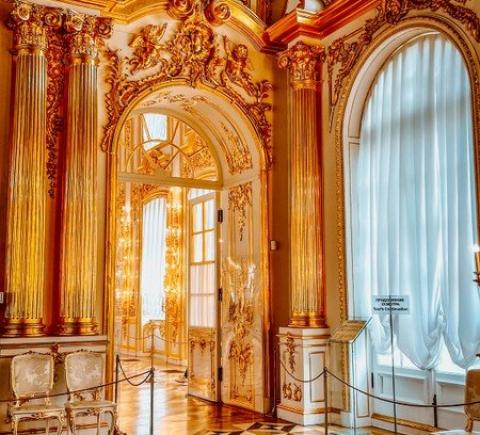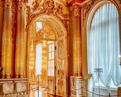 Екатерининский дворец. Он был официальной летней резиденцией трёх монархов: Екатерины I, Елизаветы Петровны и Екатерины II. Вы увидите Большой зал площадью более 800 кв. метров, где проводились официальные приемы, балы и другие торжества. Пройдёте по «золотой анфиладе» и посетите знаменитую Янтарную комнату.