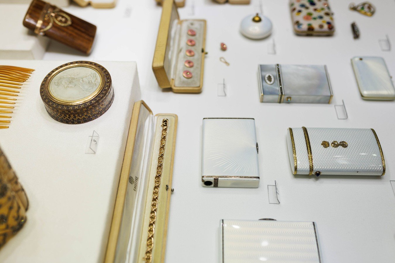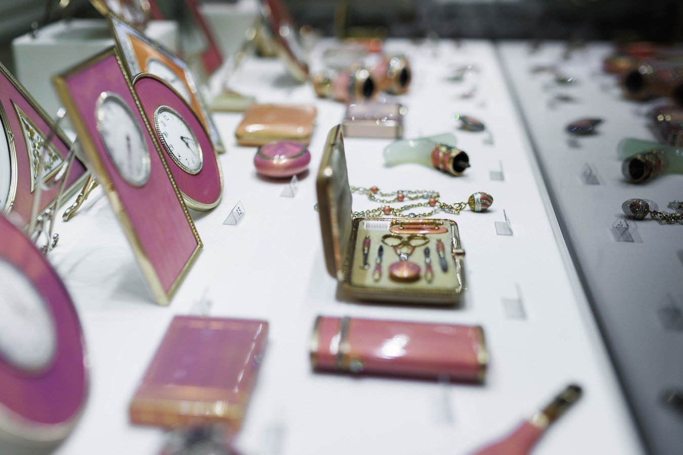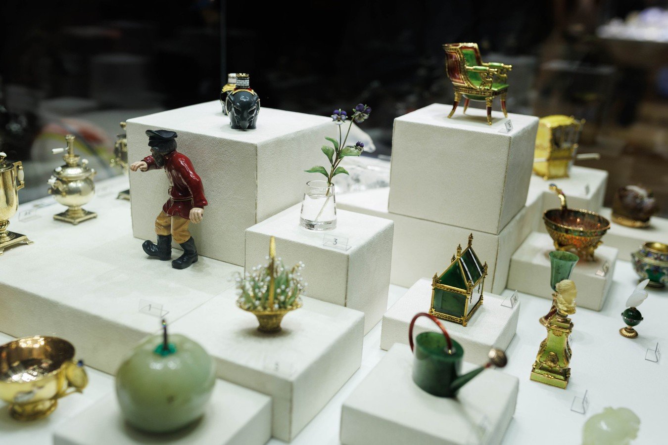 В Музее Фаберже представлено более 1000 предметов, созданных прославленной фирмой. Но экспозиция включает ещё около 3 тысяч произведений. Это работы, созданные предшественниками Карла Фаберже, его деловыми партнёрами и конкурентами. Болин, Сазиков, Никольс и Плинке, Кейбель, Кузьмичёв, Хлебников, Овчинников, Ган, Бок, Сумин — для венценоcных особ их имена были столь же хорошо известны и значимы, как и Фаберже.