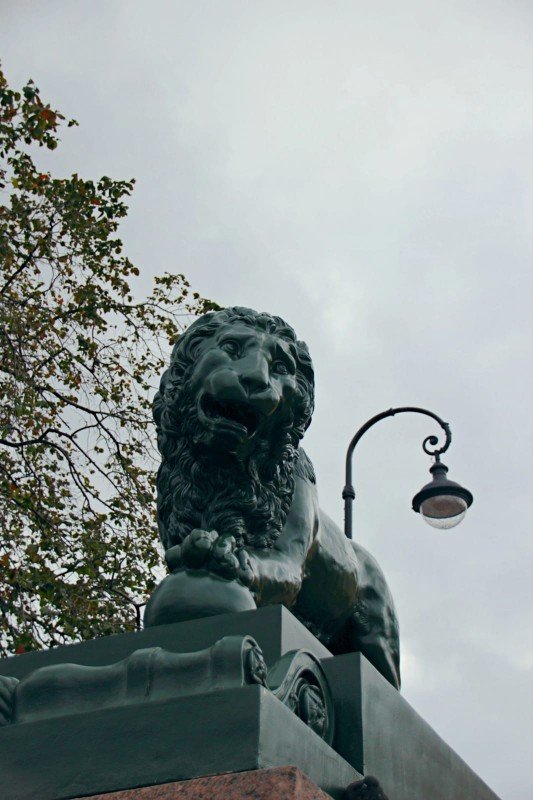 • Сторожевых львов-близнецов на Адмиралтейской набережной