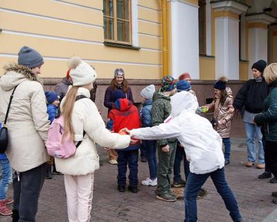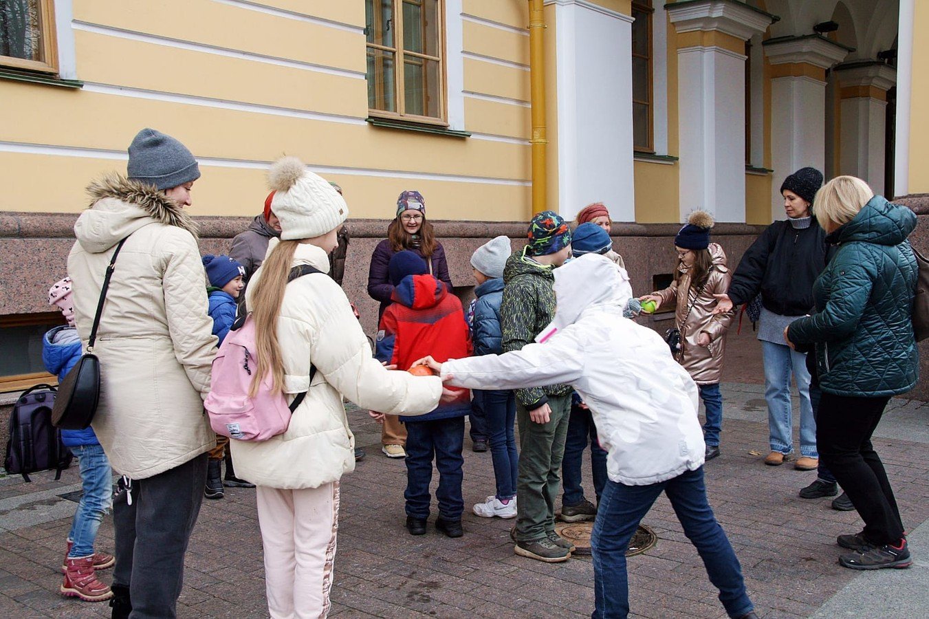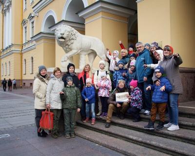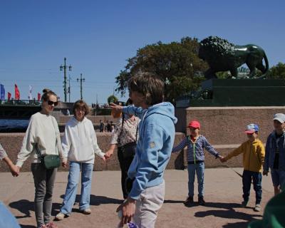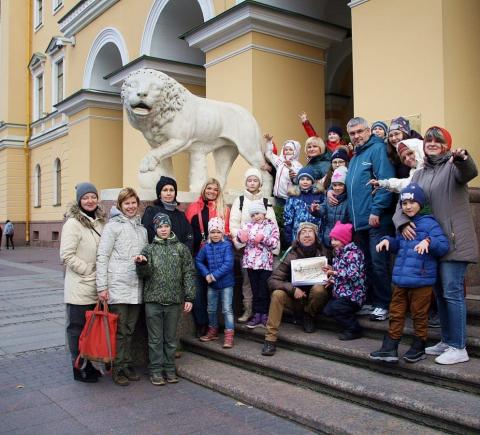 Остались довольны экскурсией. Дети 4 и 11 лет одинаково были вовлечены в процесс. Григорий удачно разбавлял исторические факты занятными играми в тему. Воссоздание медного всадника из игрушек гида было очень забавно.