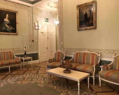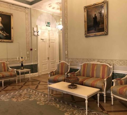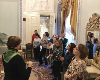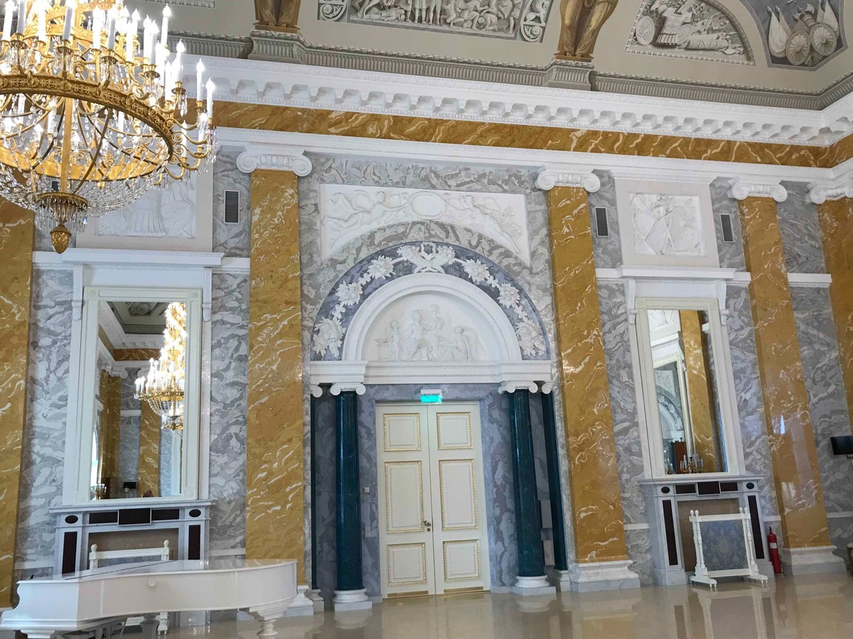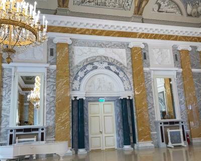 - прогулка по анфиладе парадных залов и гостиных: вы увидите Бельведер, Мраморный зал, Голубую гостиную