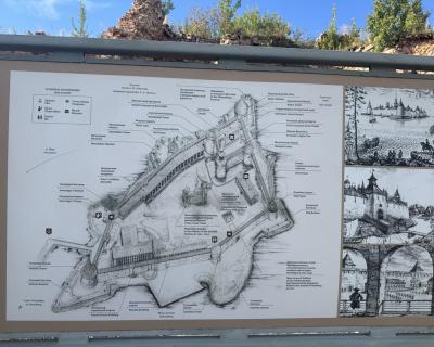 - Дорога в одну сторону займёт 1 час 50 минут вместе с переправой. В крепости проведём 2 часа
