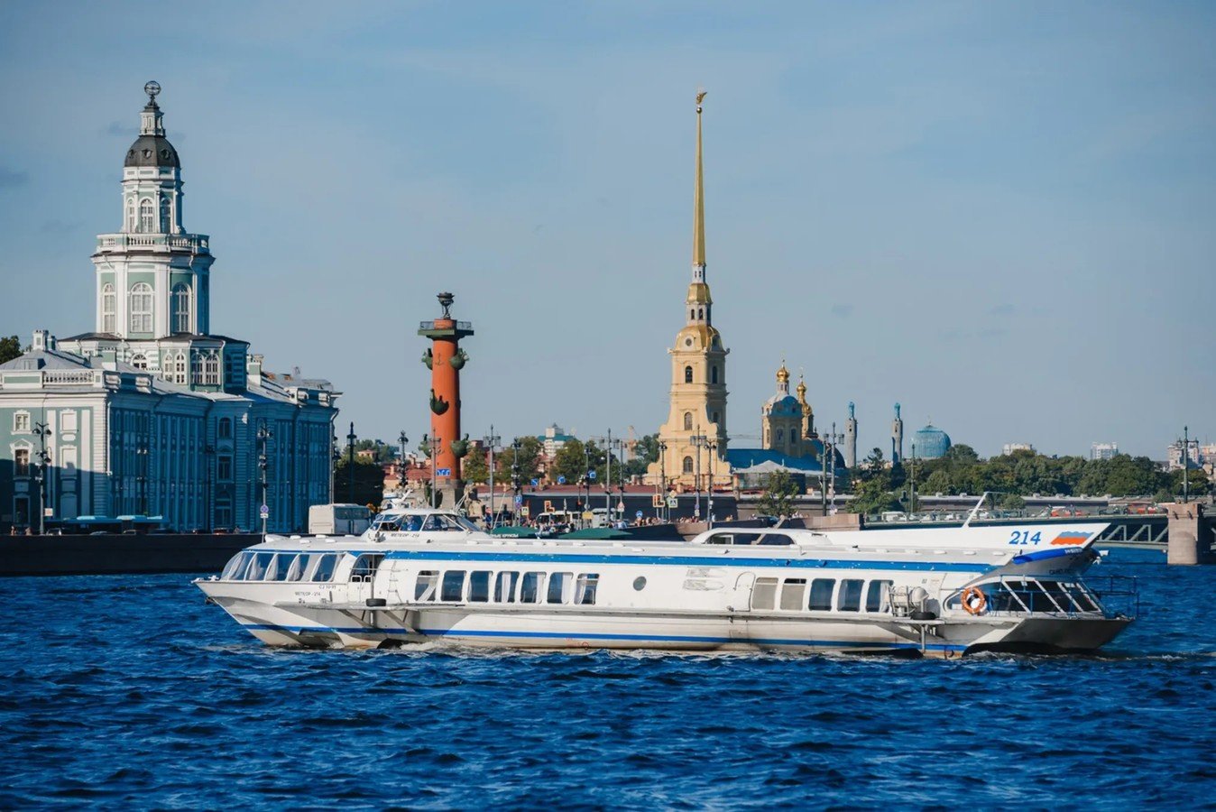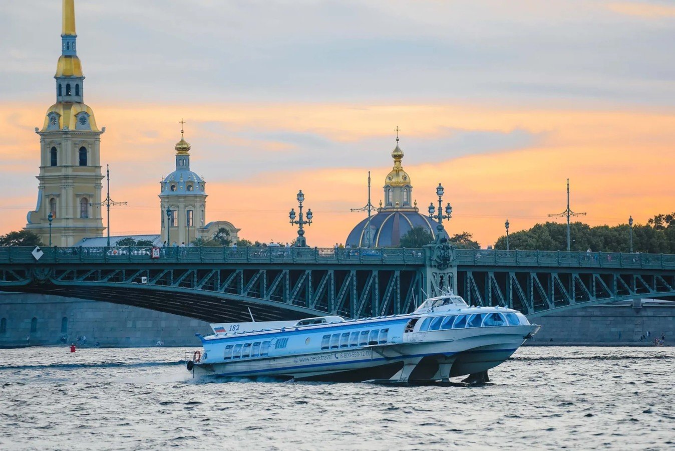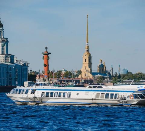 Всего за 40 минут комфортабельный метеор, вмещающий до 197 человек, доставит вас из центра города к причалу Нижнего парка Петергофа. Вместо пробок и светофоров вы насладитесь свежим морским бризом, сделаете потрясающие фото на открытой площадке теплохода между салонами и полюбуетесь Северной столицей воды.