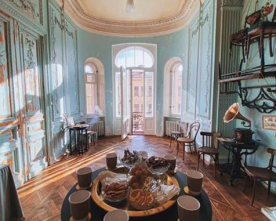 Посещение квартиры в доме Бака. Знакомство с легендарным доходным домом Бака мы начнём с внутреннего двора, чтобы оценить масштаб его «переходов». А после посетим квартиру в доме: перед вами предстанут винтажные интерьеры, камин из каррарского мрамора, граммофон. А также эркер с балконом, куда можно будет выйти за фото!