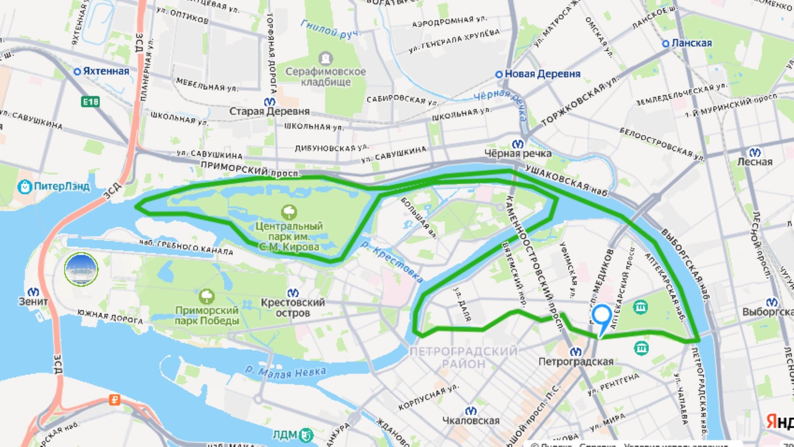 Этот маршрут покажет Петербург с более тихой и зелёной стороны. Вы пройдёте вдоль Крестовского, Петроградского и Елагина островов, увидите дворцы, сады и особняки и окажетесь у акватории, откуда особенно красиво открывается Финский залив. Аудиогид поможет услышать истории этих мест и лучше понять их характер.