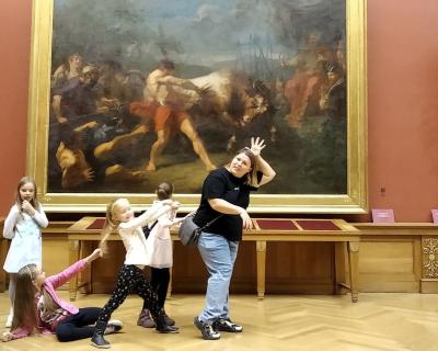 Вы кратко познакомитесь с историей Русского музея и, играя, рассмотрите шедевры. Это «Девятый вал» и «Волна» Айвазовского, «Последний день Помпеи» Брюллова, портреты Боровиковского и Рокотова, серия благородных девиц Левицкого и другие картины, знакомые нам с детства из учебников.