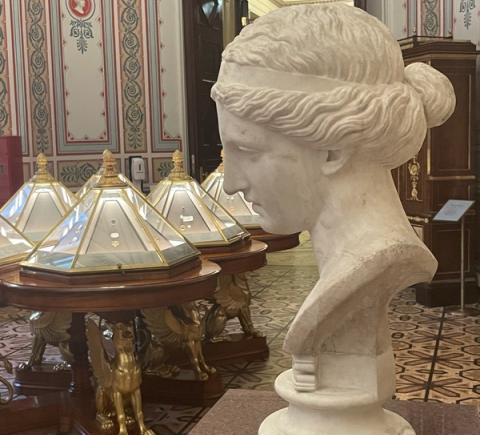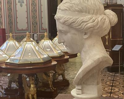 Увидим шедевры античной экспозиции: камею Гонзага, уникальную коллекцию терракотовой пластики, статую Венеры Таврической, статую Юпитера из загородной виллы римского императора Домициана и многое другое.