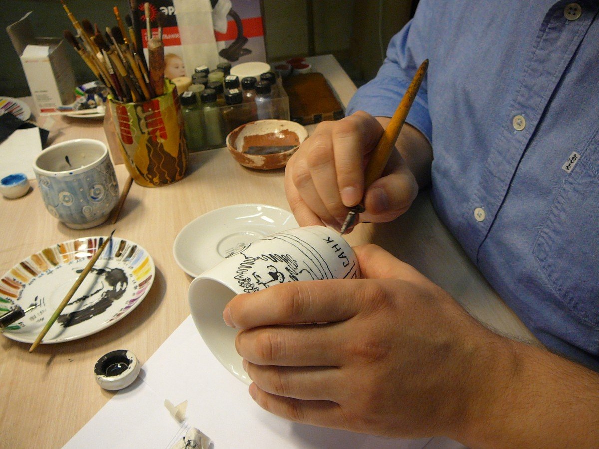 Мастер-класс пройдёт в моей уютной студии. Здесь есть все необходимые материалы и помощники. Не волнуйтесь о своём уровне подготовки, главное — ваш творческий настрой, а с остальным я помогу. Мы можем подобрать изображение из книг о городе или заготовок, или работать с вашей фотографией и рисунком. В работе мы используем материалы высокого качества, поэтому готовое изделие прослужит вам долгие годы. Для рабочей основы в мастерской вы можете выбрать кружку, тарелку или другой предмет из фарфора. Работа пройдёт в мини-группе, чтобы уделить достаточное количество внимания каждому участнику.