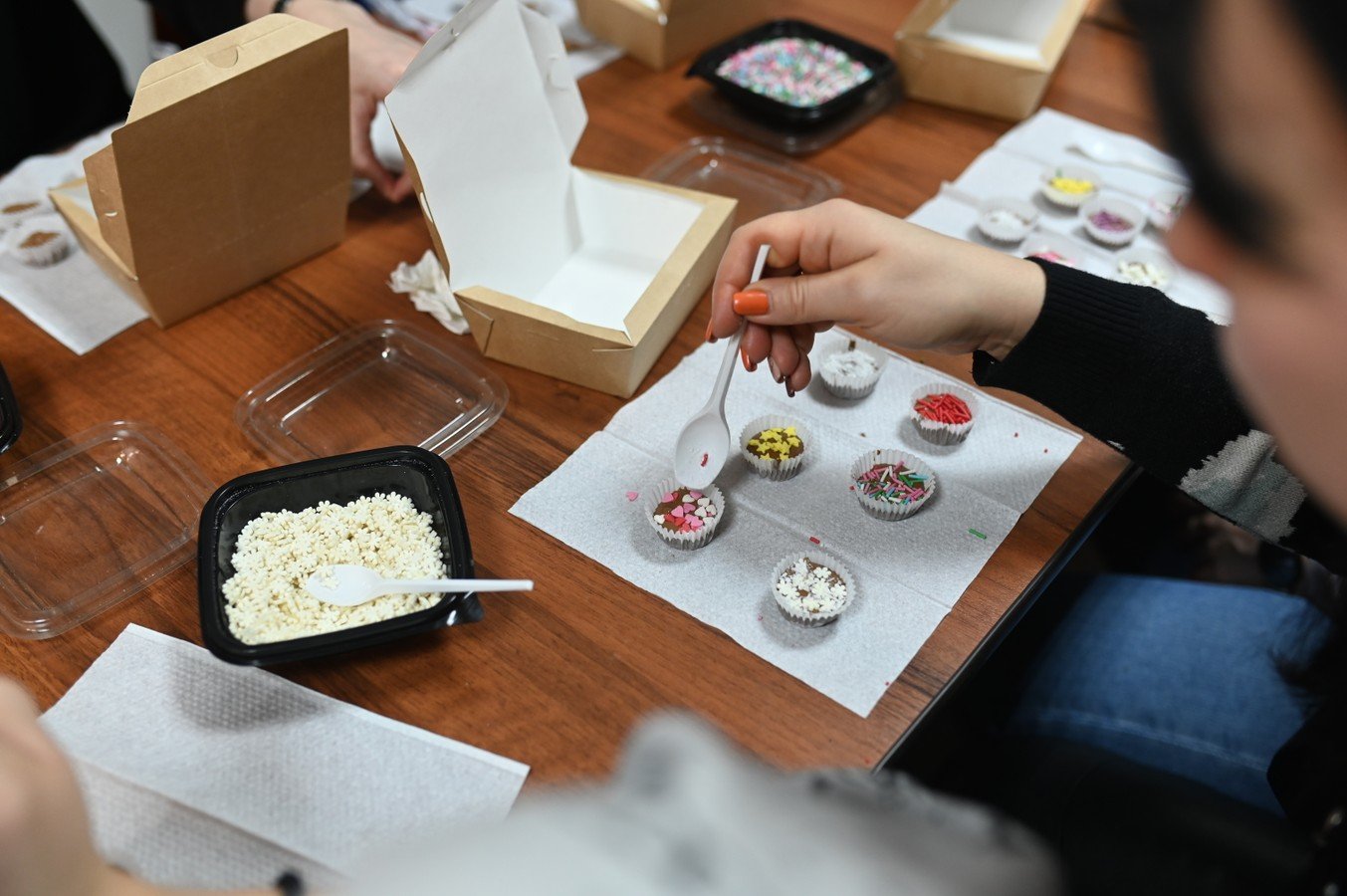 За 45 минут вы создадите шесть конфет с уникальным дизайном. Для украшения мы предлагаем кокосовую стружку и сахарные посыпки различных цветов и форм. Вы окунётесь в волшебство шоколада, а мы расскажем кое-что интересное о нём.