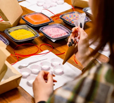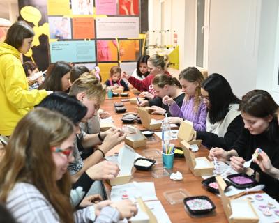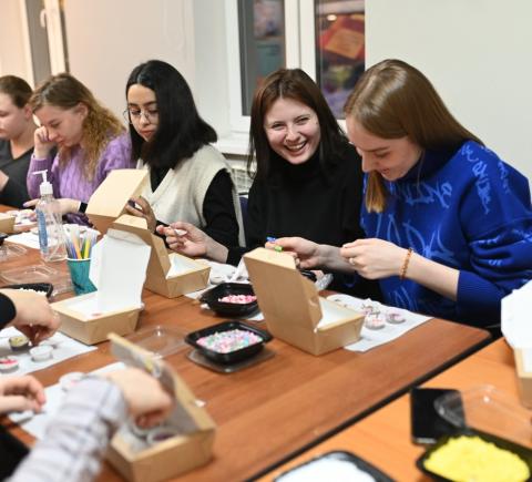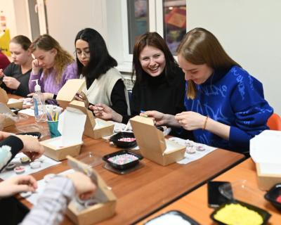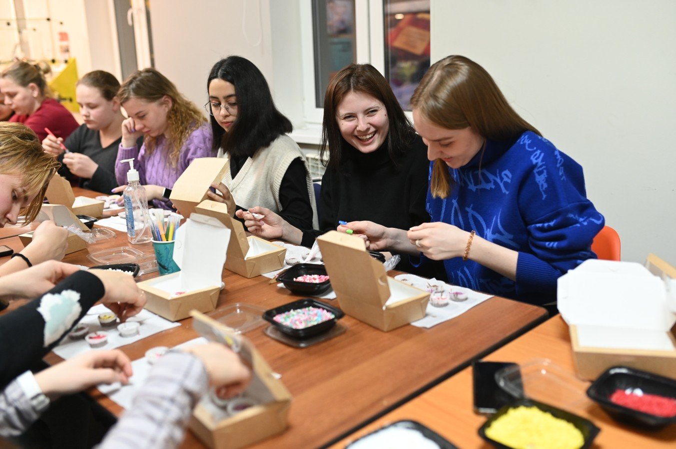 Когда сладкий шедевр будет готов, вы положите его в подарочную коробку, красиво подпишете, перевяжете лентой и заберёте с собой. Подарите кому-то или себе — на ваш выбор!