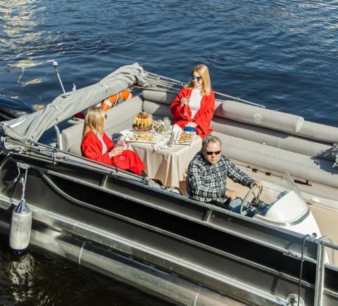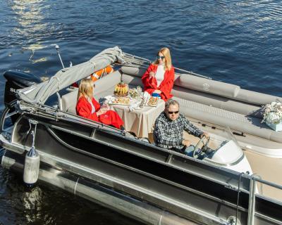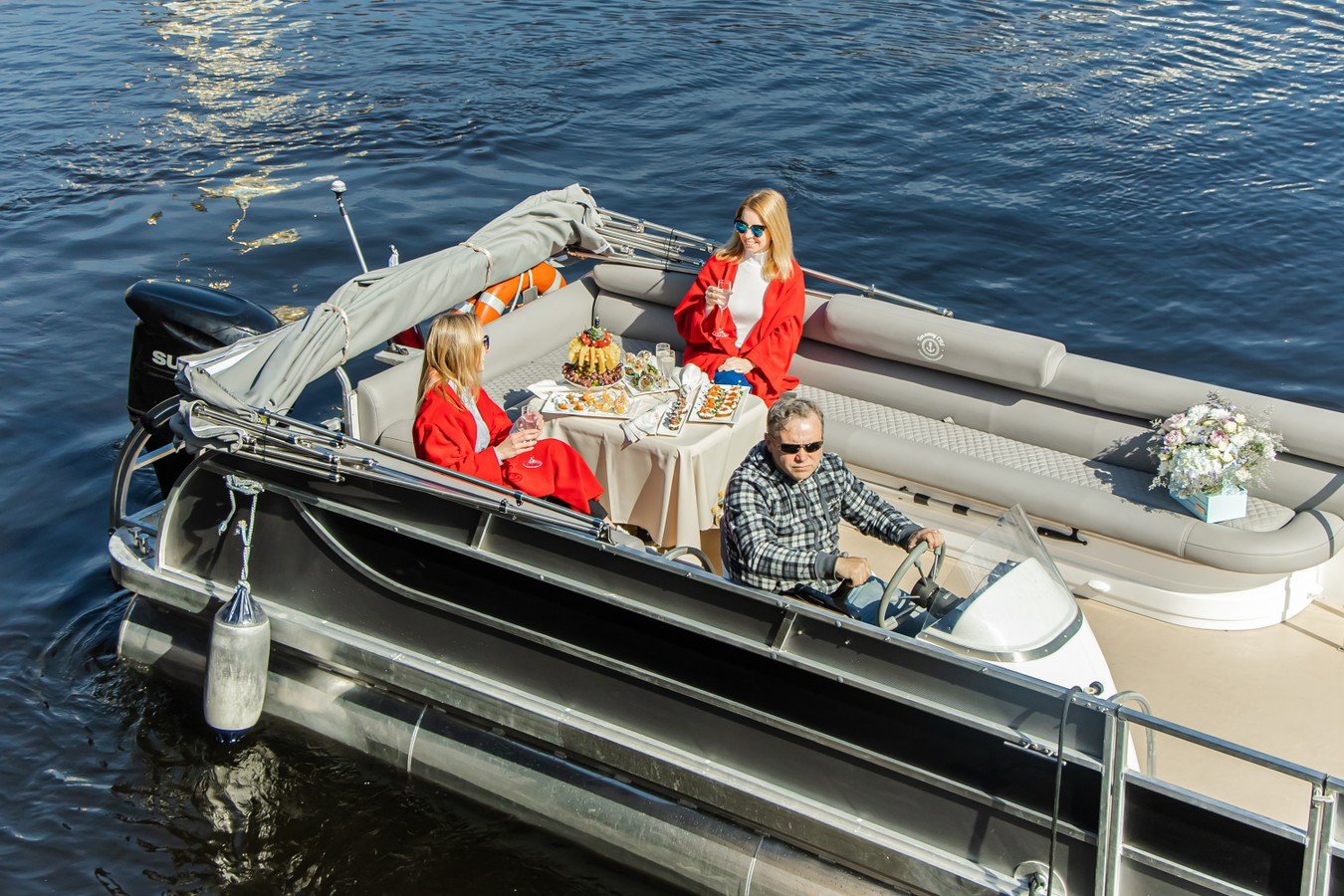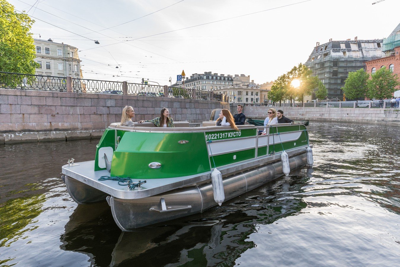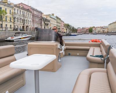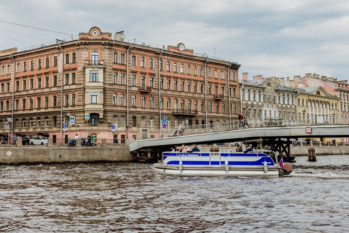 Прогулка на моторном катере. Этот формат предназначен для семьи или компании друзей. На катере есть все необходимое: столик, удобные мягкие диваны, расположенные по всему периметру судна, пледы, а также тент на случай дождя или яркого солнца. Катер полностью открытый, поэтому ничто не помещает вам рассмотреть красоты города.