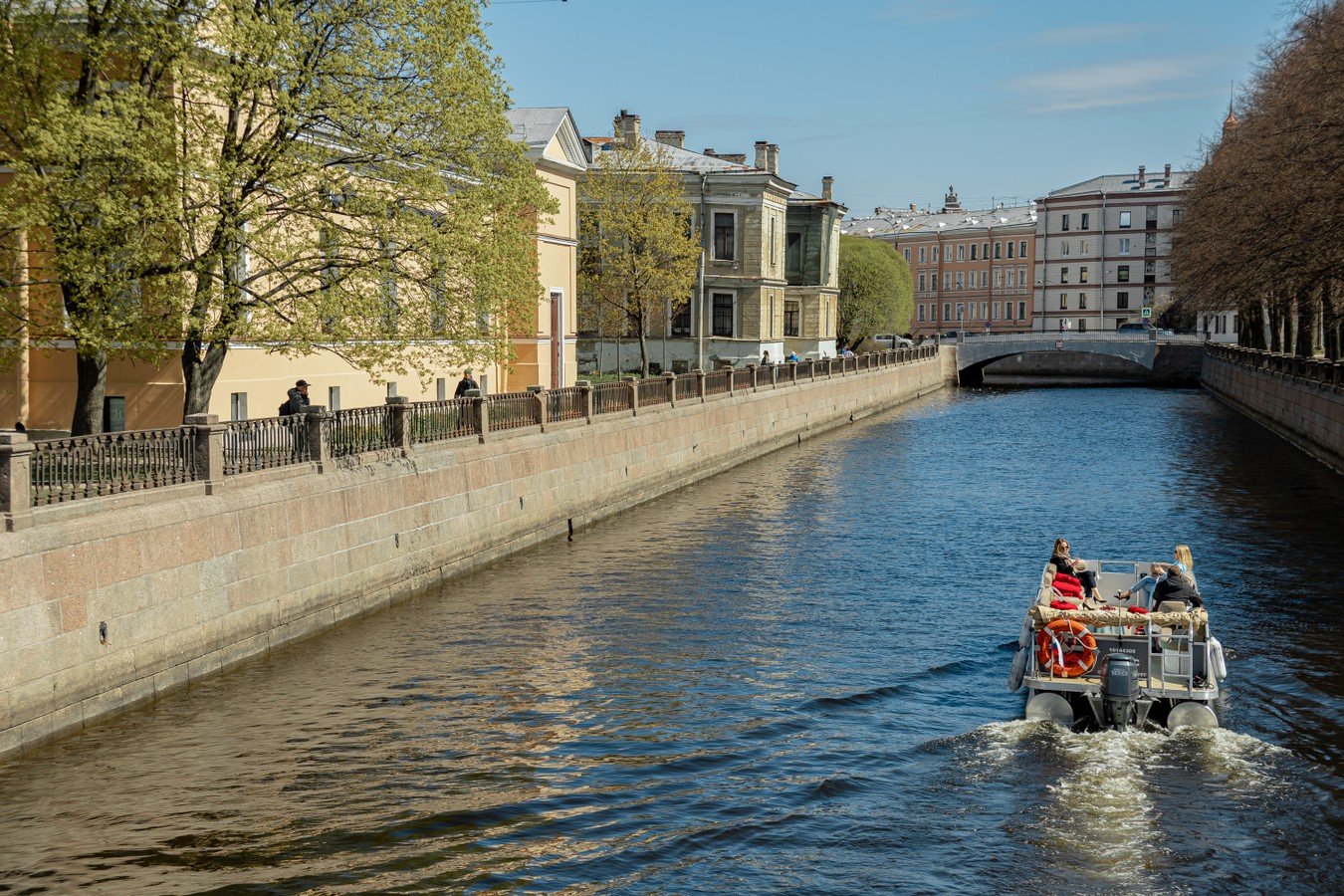 1 час 15 минут: р. Фонтанка — Крюков канал — канал Грибоедова — Зимняя канавка — р. Нева — р. Фонтанка — доплата 1500 ₽