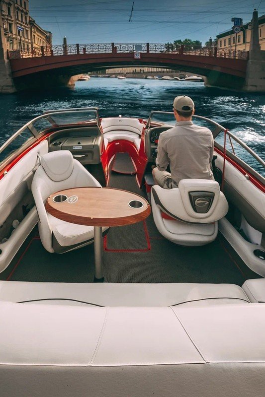 - Катер — Crownline 195 SS Ferrari. С вами будет квалифицированный капитан-гид, на борту есть все необходимые базовые спасательные средства