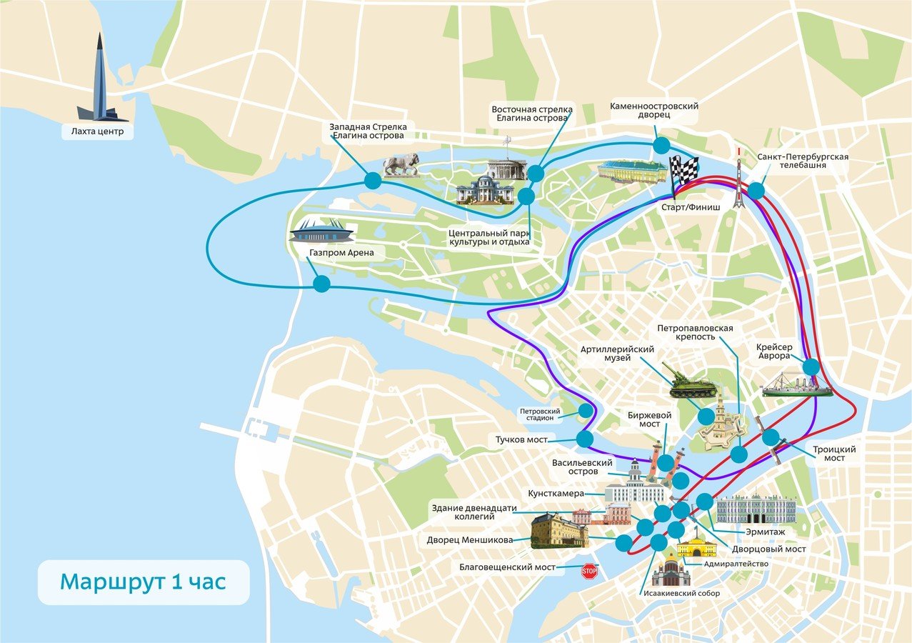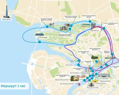 Маршрут № 1: по всей парадной Неве и Кронверкскому проливу вдоль Петропавловской крепости