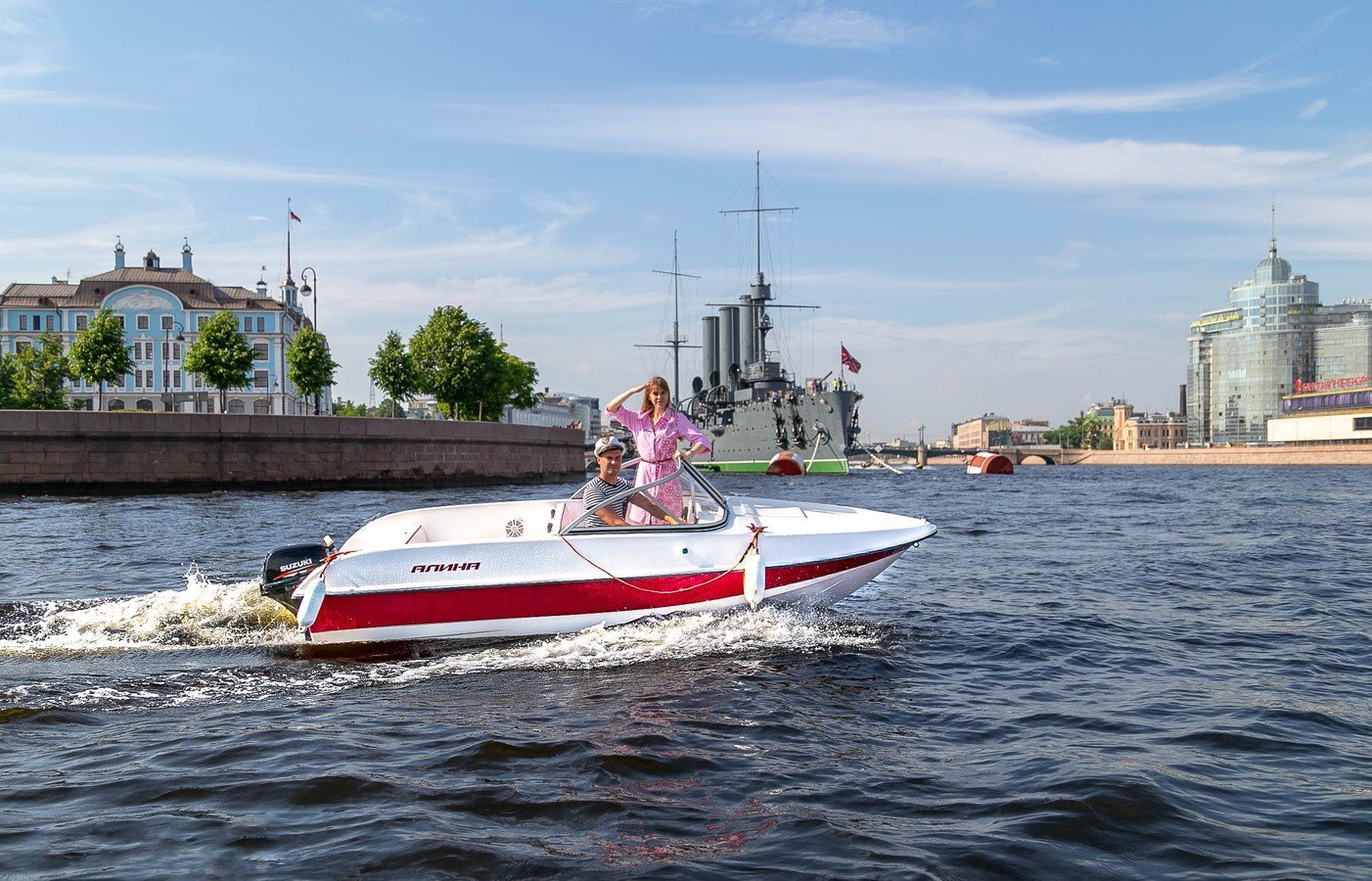 - Прогулка проходит на небольшом катере «Толстый» с максимальной посадкой — 3 пассажира. Для наибольшего комфорта мы рекомендуем бронировать данный катер для прогулок вдвоём. Длина катера 4,6 м. На борту для размещения пассажиров установлено два мягких кожаных дивана. Также есть музыкальная система с Bluetooth.