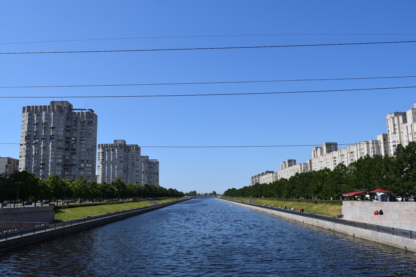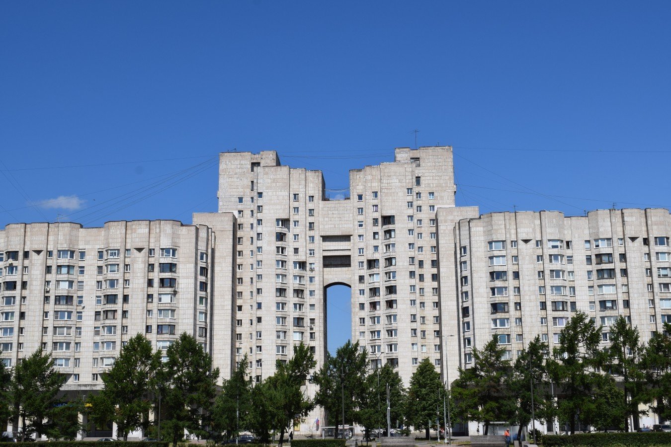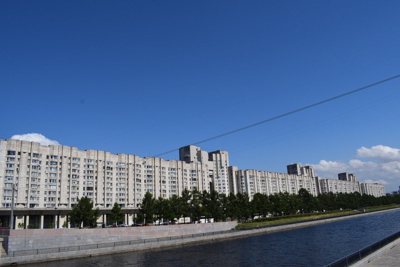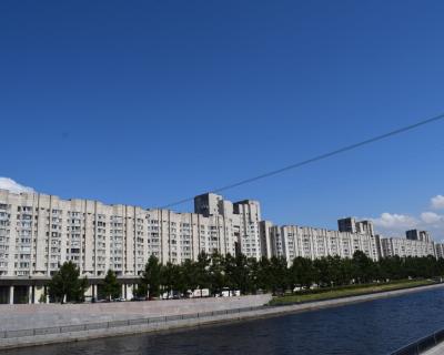 - Новосмоленская набережная. Посмотрим на самый длинный дом Петербурга — 750 метров — и построенные в середине 1980-х «Озёрные аркады», напоминающие о Версале. На первом этаже расположился Центр фирменной торговли, на открытии которого у Михаила Горбачева случился конфуз с одной из посетительниц.