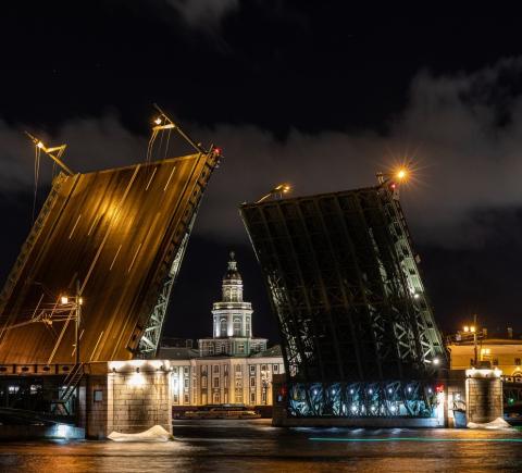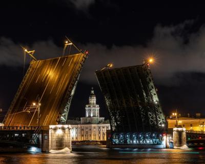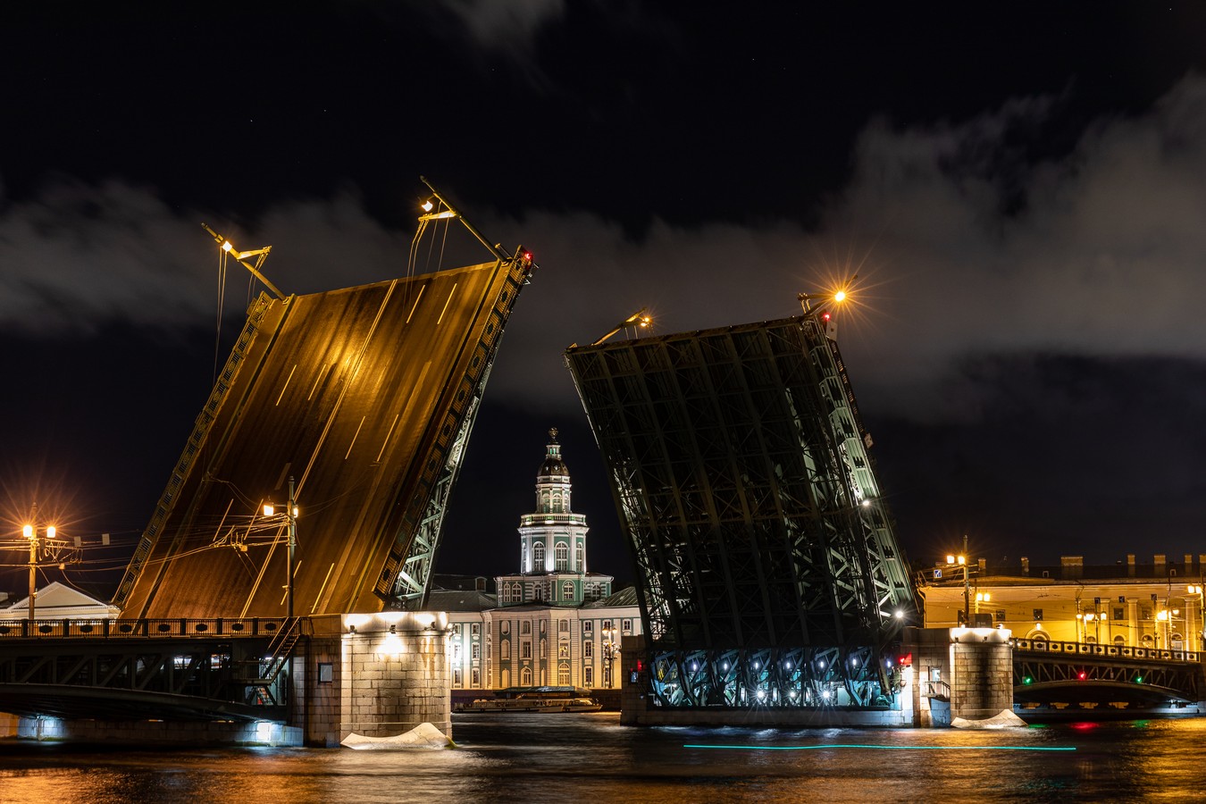 Увидеть главные места города в свете ночных огней и полюбоваться с воды разведением мостов