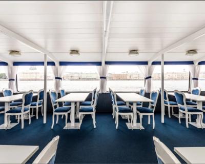 Вы прокатитесь по Неве на теплоходе с закрытой и открытой палубами. Послушаете увлекательный рассказ гида и увидите с воды развод четырёх мостов: Дворцового, Троицкого, Литейного и Большеохтинского. На теплоходе работает кафе, где вы сможете купить горячие и прохладительные напитки.