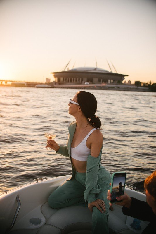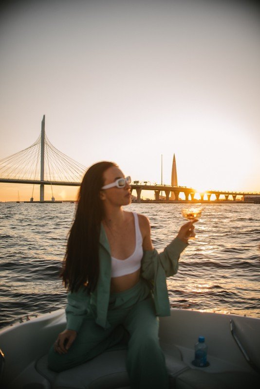 Петербург с воды — совсем иной город. А его «новая география» с впечатляющим вантовым мостом через Корабельный фарватер, роскошной «Газпром Ареной» и «Лахта-центром» рискует стать самым востребованным направлением. Финский залив, закат, игристое, катер — конечно, да!