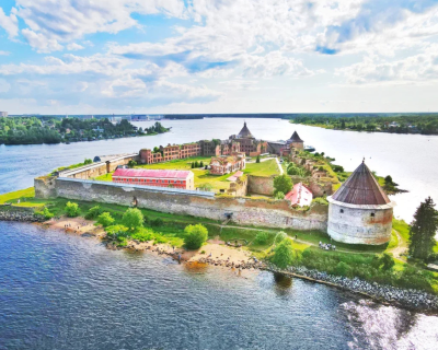 Теплоходная переправа на Ореховый остров и экскурсия по средневековой цитадели. Вы узнаете о 700-летней истории крепости — от княжеской твердыни до героической обороны в Великую Отечественную войну.