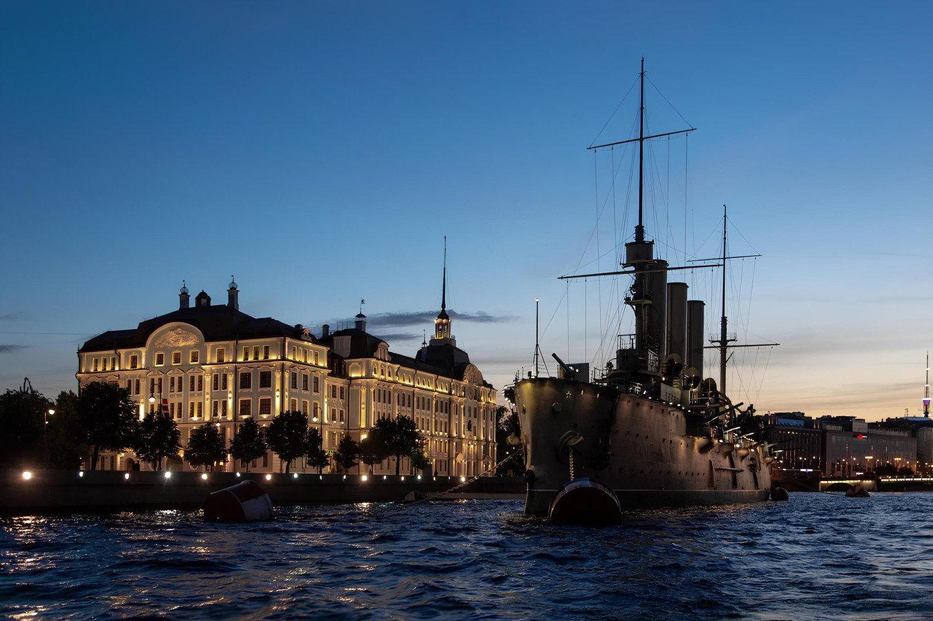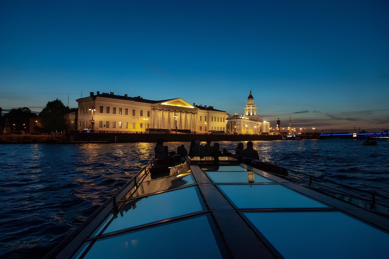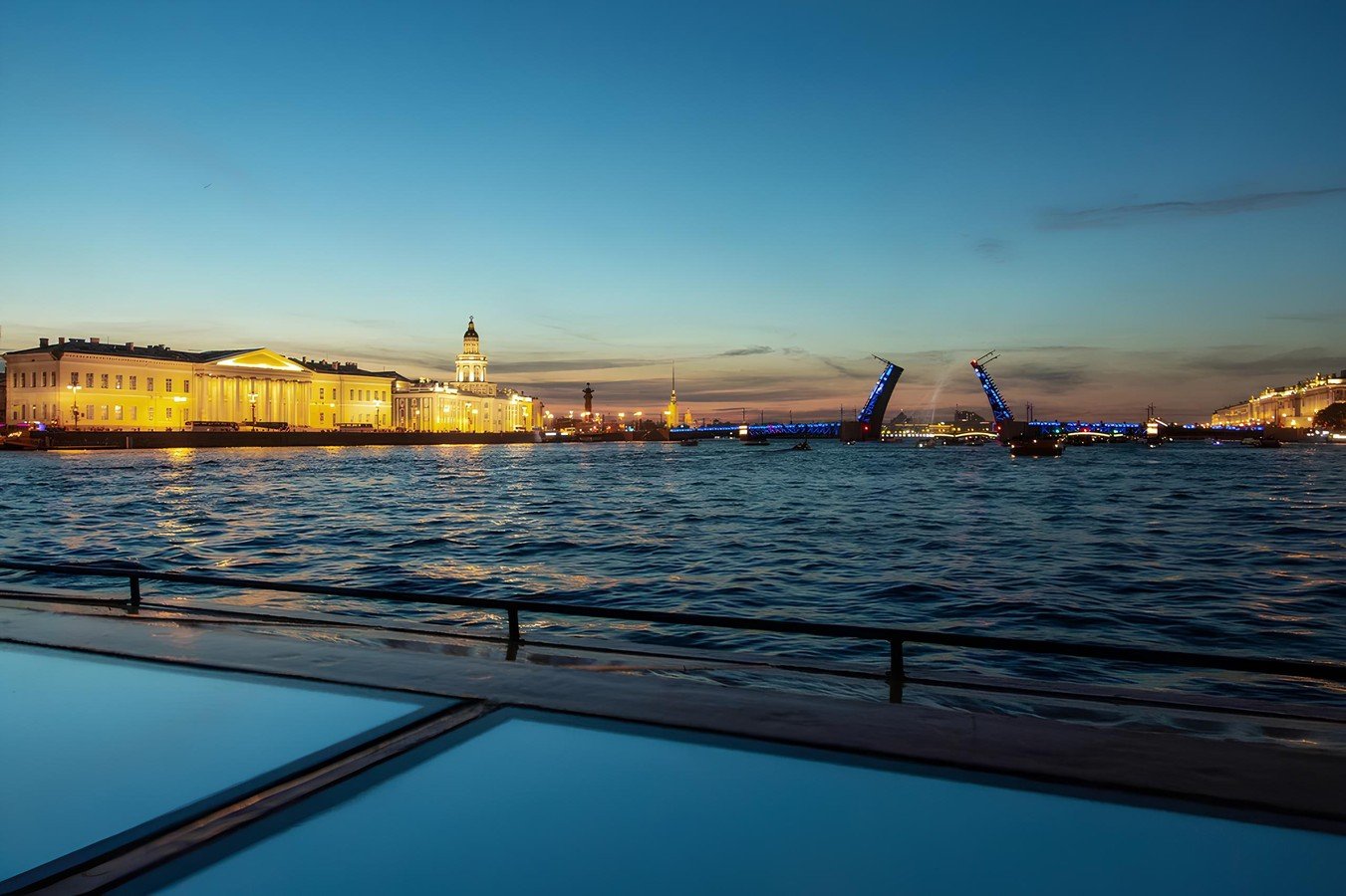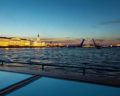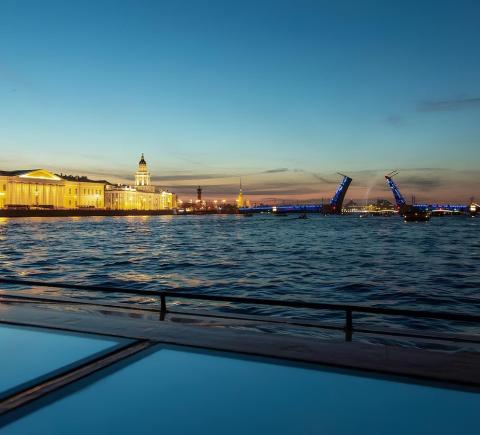 Приглашаем вас почувствовать таинственную атмосферу Петербурга! Вы полюбуетесь ночными огнями, посмотрите на Петропавловскую крепость и проплывёте мимо крейсера «Аврора». А также увидите визитную карточку города — развод Дворцового, Троицкого и Литейного мостов.