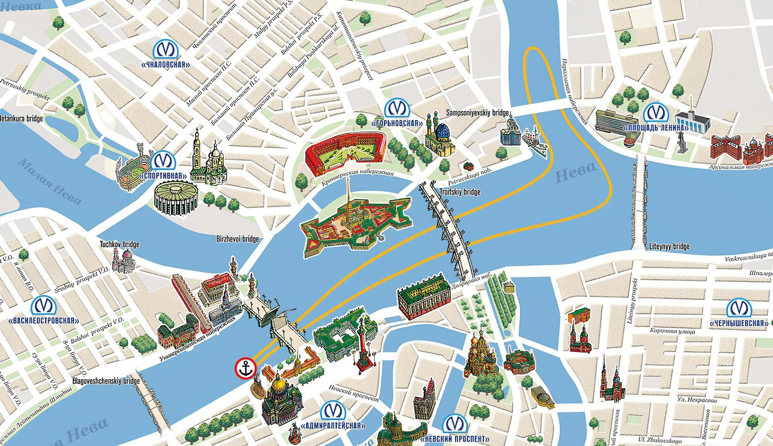 Медный всадник — Дворцовый мост — Троицкий мост — Литейный мост — Медный всадник