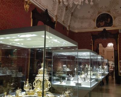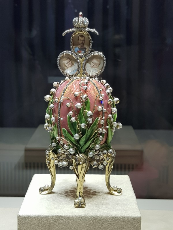 Здесь вы увидите творения ювелиров дореволюционной России: золото, драгоценные камни, эмали и фантазийные предметы. Жемчужина коллекции — девять императорских пасхальных яиц Фаберже, вернувшихся на Родину спустя почти сто лет. В экспозиции также есть полотна Айвазовского, Брюллова и Поленова.