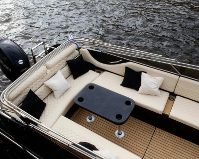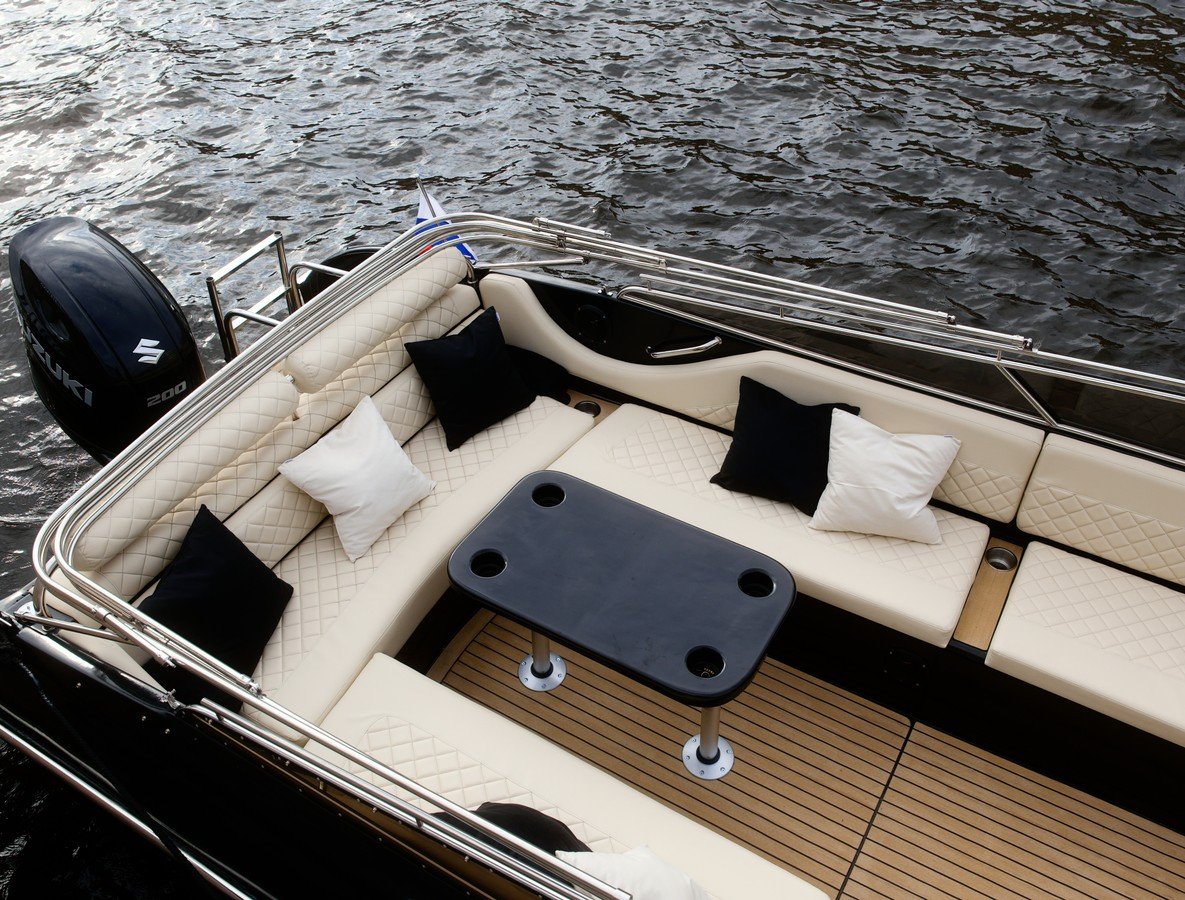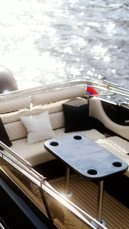 На борту есть бокалы и стаканчики — не забудьте ваши любимые напитки! Не переживайте о мелочах, санитарная комната на катере тоже есть. Музыка через Bluetooth добавит атмосферы, а наш капитан — настоящий маэстро водных просторов, с ним вам будет комфортно и безопасно.