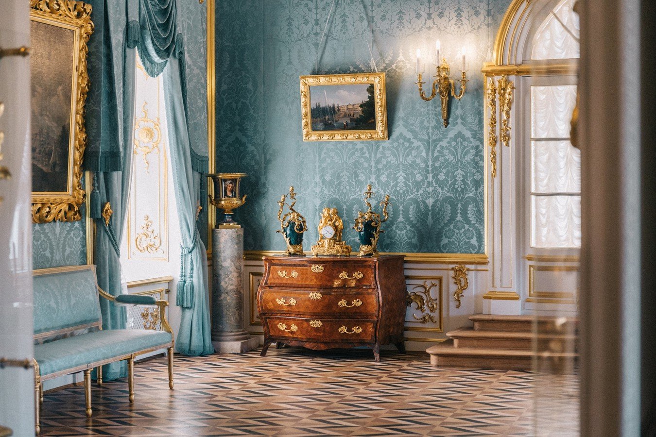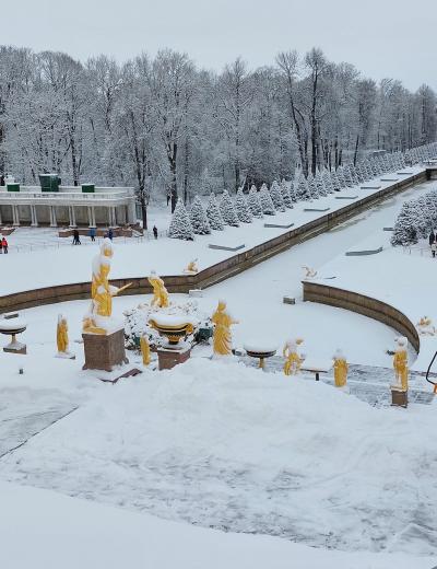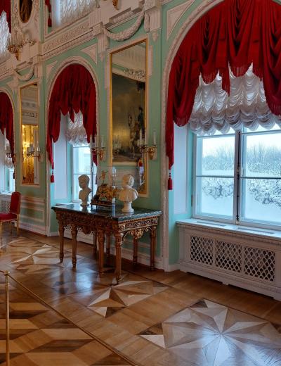 Экскурсия по Большому Петергофскому дворцу. С местным гидом вы пройдете по роскошным залам этого «коронного» дворца — в таких интерьерах легко представить, как проходили балы и маскарады, приемы именитых гостей, семейные праздники царской семьи. Вы услышите о том, как здесь поживали императоры в разные века, узнаете о событиях из российской истории, связанной с этим дворцом. И конечно, приглядитесь к деталям убранства, оцените предметы искусства и разберетесь в особенностях разных стилей.