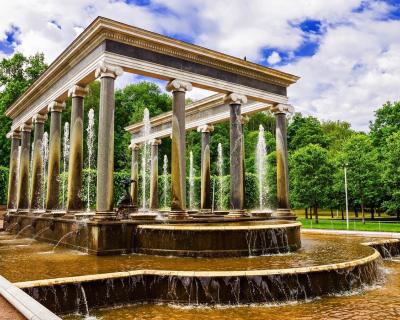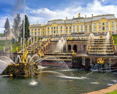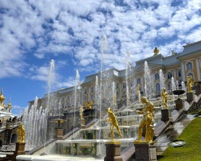 Мы посетим Большой петергофский дворец и/или один из малых дворцов (Монплезир, Эрмитаж или Марли), а также Гроты Большого Каскада, Банный корпус, Екатерининский корпус и др.). Во время прогулки по парку полюбуемся многочисленными фонтанами и каскадами. Поговорим об истории и символике скульптур, и вы поймёте, почему Петергоф снискал славу русского Версаля. Пройдёмся и по прекрасным тенистым аллеям, где перед вами откроются чудесные виды на Финский залив.