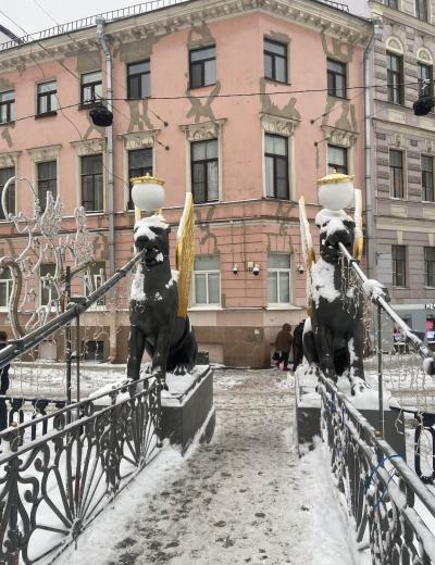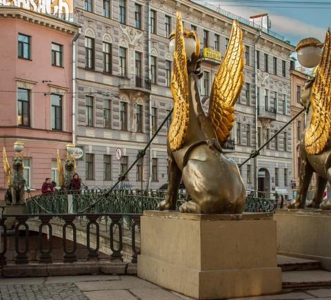 Банковский мост, на котором расположились безмолвные хранители — крылатые львы. Они стерегут подступы к старинному Ассигнационному банку — символу финансовой силы и могущества. Это место концентрации энергии денег.