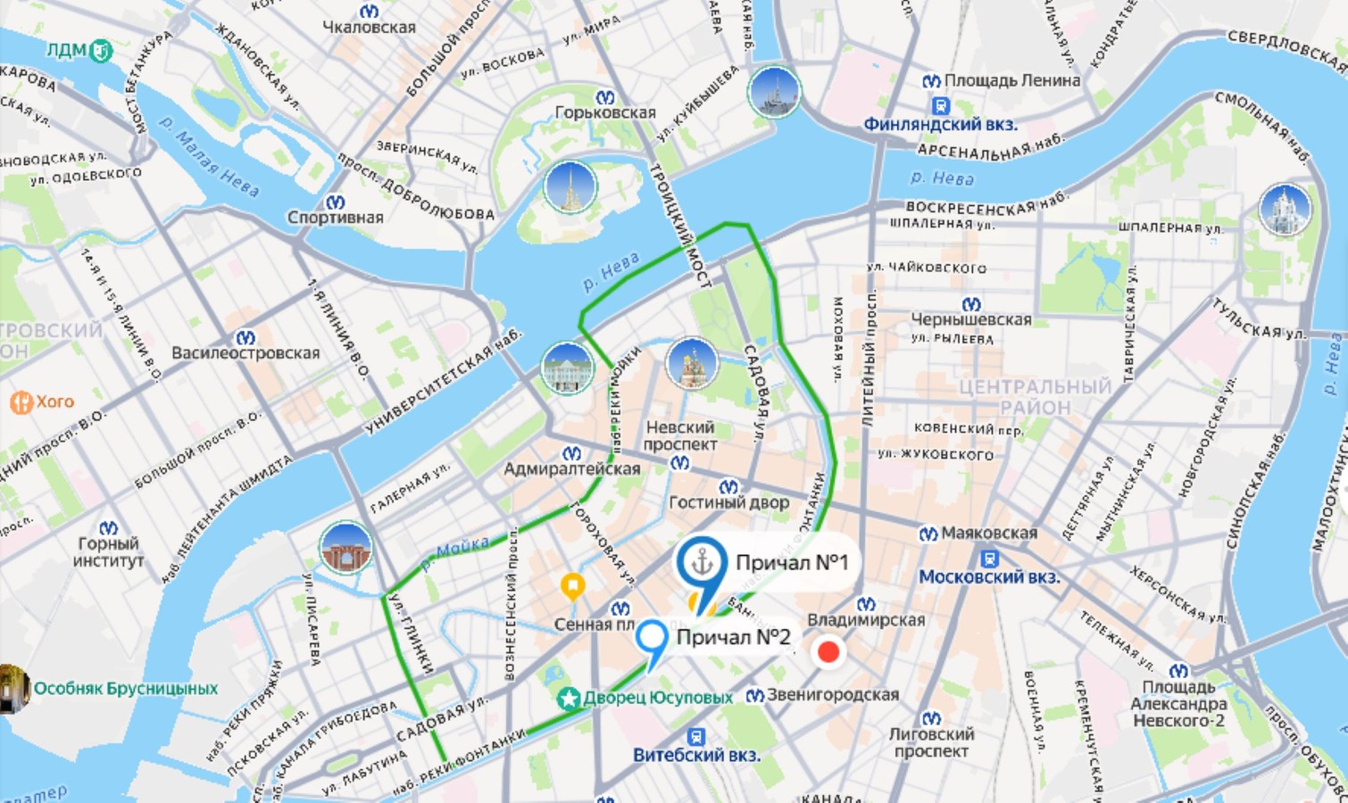 Маршрут: река Фонтанка → Крюков канал → река Мойка → Зимняя канавка → река Нева → река Фонтанка