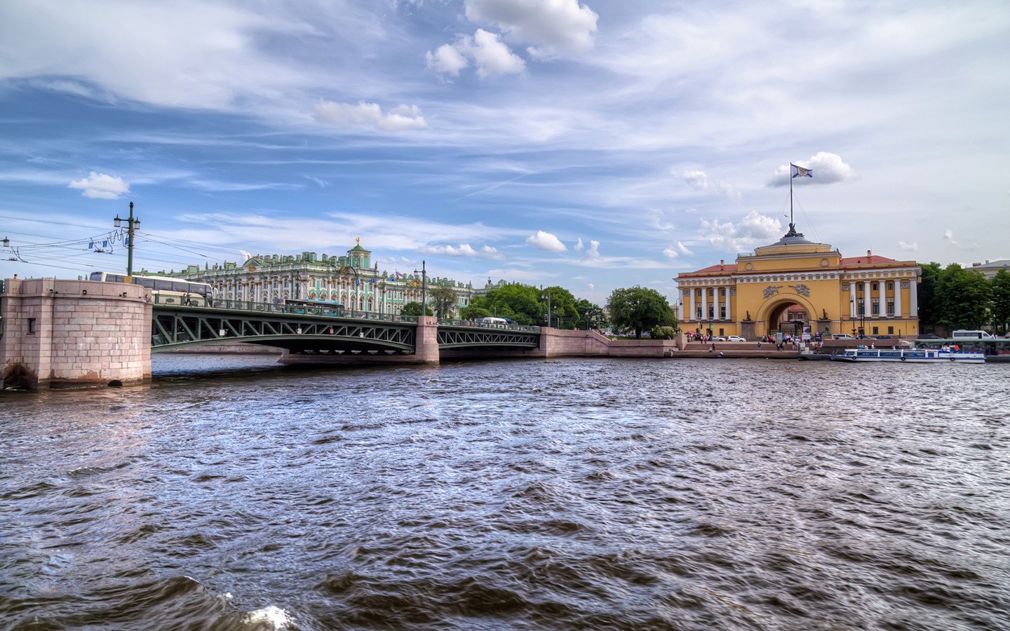 - Дворцовый мост, к которому мы следуем мимо Адмиралтейства и спуска со львами