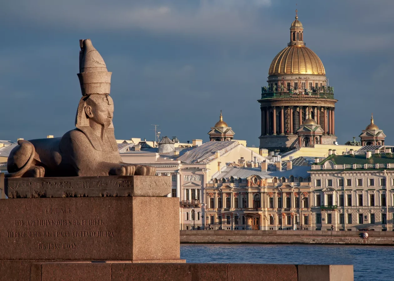 - Медный всадник — легендарный памятник Петру I, за которым открывается вид на грандиозный Исаакиевский собор.