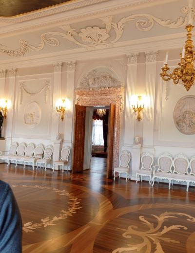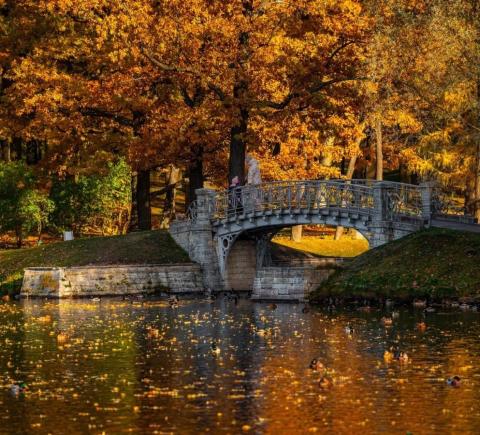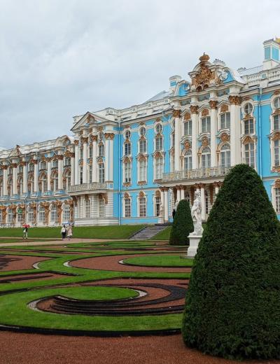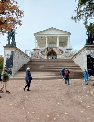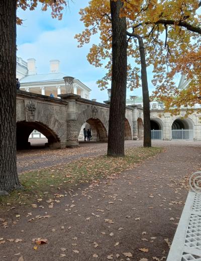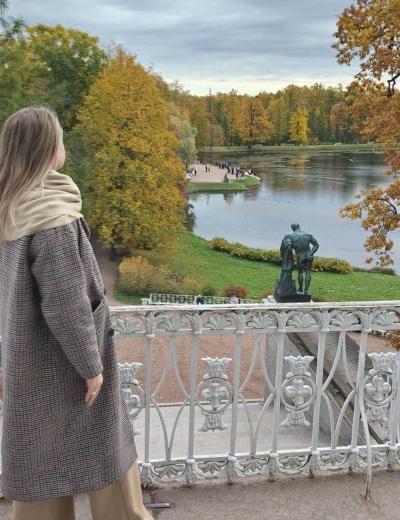 Из Петербурга мы отправимся в поэтичный город Пушкин, где вы прикоснётесь к истории Царского Села. На прогулке по Екатерининскому парку поговорим о трёх владелицах резиденции, императрицах Екатерине I, Елизавете Петровне и Екатерине II. Вы увидите красивейшие парковые павильоны — Агатовые комнаты, Эрмитаж, Турецкую баню, Грот и Камеронову галерею. Узнаете факты и легенды о главном сокровище дворца, Янтарной комнате. И конечно, одной из тем экскурсии станет учёба Пушкина в Царскосельском лицее, который занимает особое место в произведениях поэта.