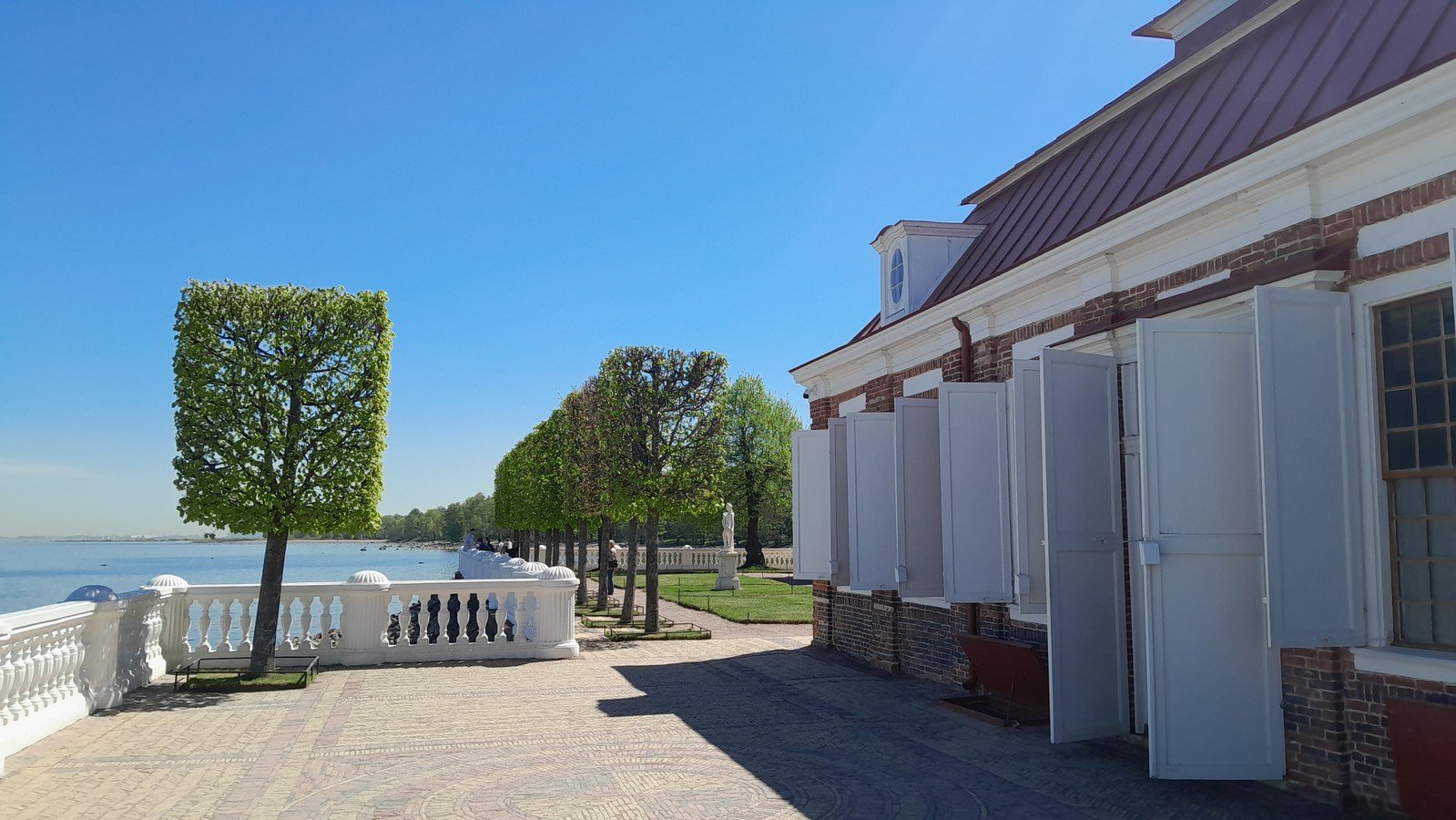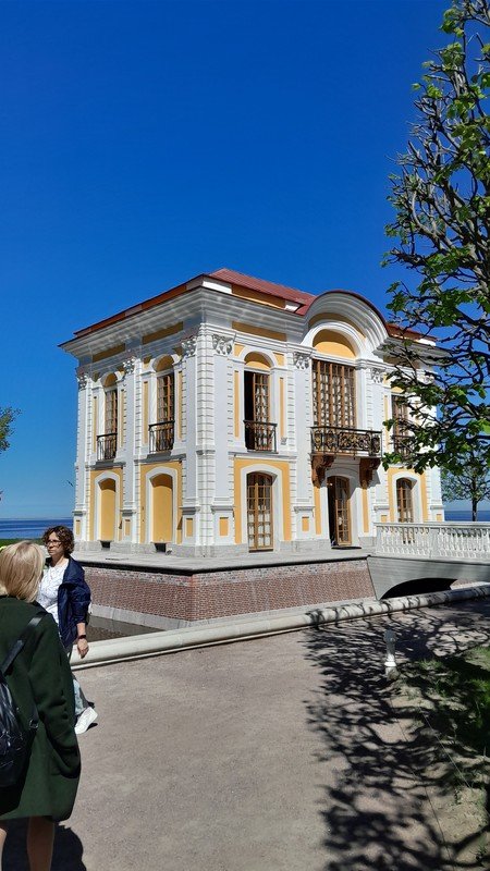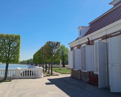 Прогулка вдоль берега залива выведет нас к павильону Эрмитаж. Это первая подобная постройка. Лишь позже Эрмитажи появятся в Царском Селе и Петербурге.