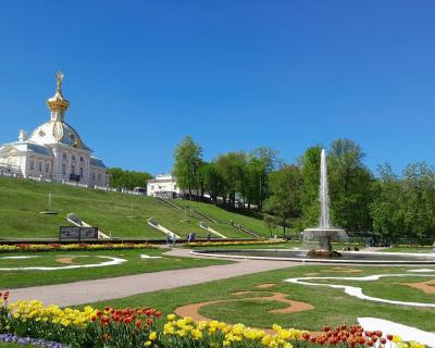 Начнём знакомство с Петергофом с рассказа о главном — Большом Петергофском дворце. В холодный сезон у вас будет достаточно свободного времени, чтобы самостоятельно посетить его. С высоты дворца мы осмотрим Большой каскад и фонтан «Самсон» — это визитная карточка Петергофа. Со смотровой площадки у дворца лучше всего видна центральная часть парка. Здесь мы поговорим о парке в целом, его структуре и планировке.