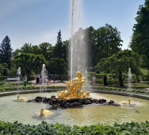 Не пропустим и фонтаны-шутихи. От серьёзных тем здесь легко перейти к юмору и развлечениям начала 18 века. А дальше — фонтан «Солнце» и птичники (вольеры с лебедями и утками). Неподалёку от них находится фонтан «Пирамида» — эффектная инсталляция эпохи Петра I. Осталось осмотреть Римские фонтаны и каскад «Шахматная гора» — и наше путешествие подходит к концу.