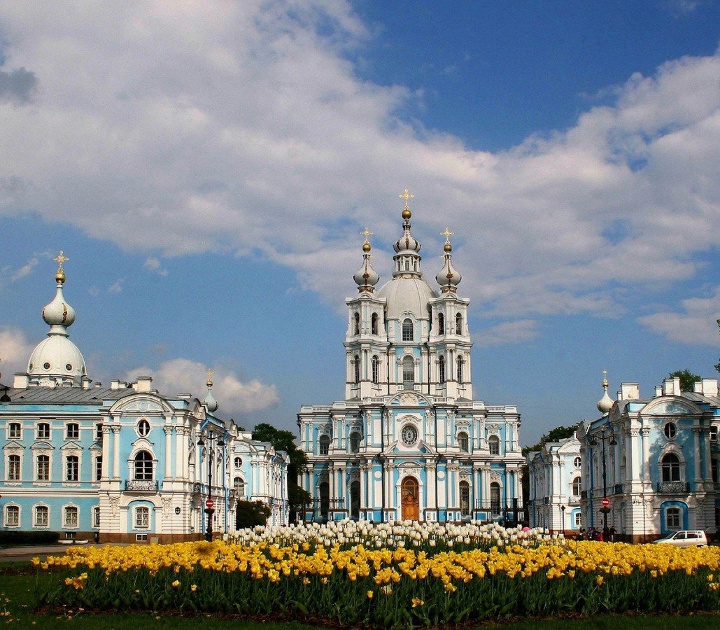 - Смольный собор — действующий. Пожалуйста, одевайтесь соответственно
