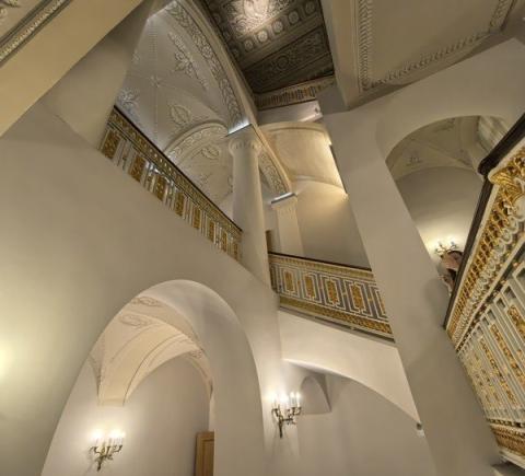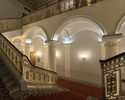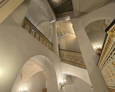 - парадную лестницу, соединяющую три этажа