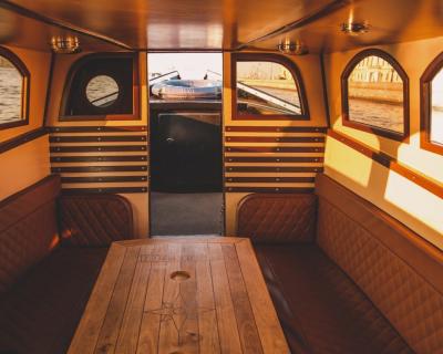 Катер «Голландец» оборудован открытой кормой со столиком и закрытой каютой с обогревателем и пледами. Зона отдыха отделена от капитанской, что позволит вам почувствовать себя максимально свободно.