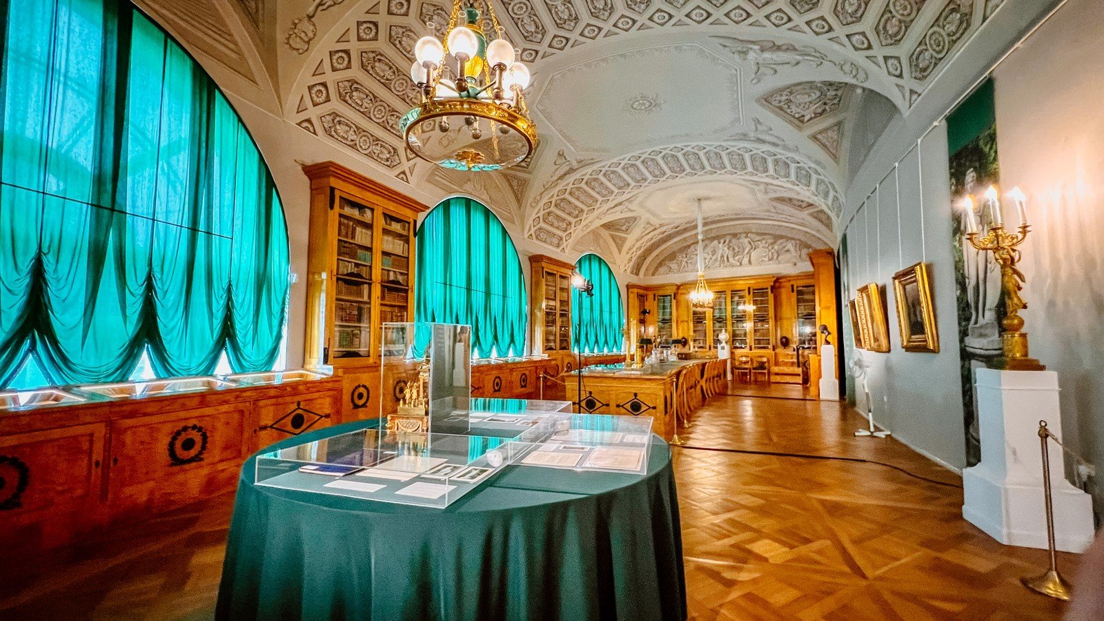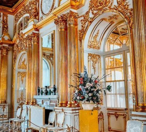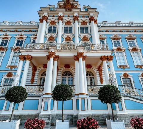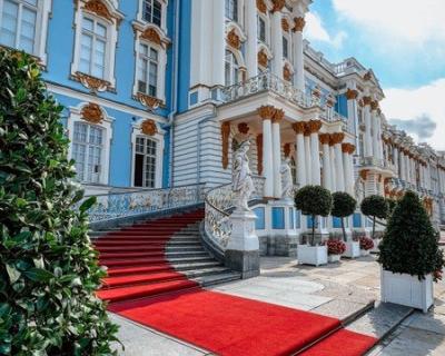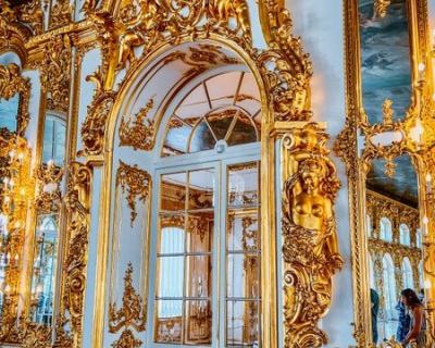 Пушкин. Вы посетите Екатерининский дворец со знаменитой Янтарной комнатой. В тёплый сезон также погуляете по Екатерининскому парку, который удивит вас обилием аллей и дорожек, скульптур и водоёмов.